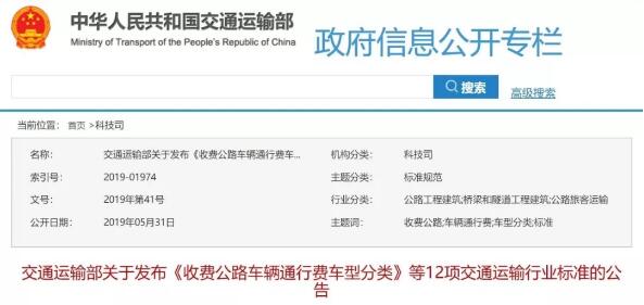 导语:近日,交通运输部发布《收费公路车辆通行费车型分类》行业标准的公告,要求按车(轴)型收取通行费,并且新的车型划分标准已正式发布,即将进入施行阶段!新标准还将实施日期从原本预计的2020年1月1日,提前到了2019年11月1日,这一细节,足见新标准实施的迫切性!