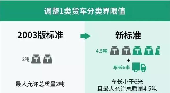 新标准中各类货车均按照总轴数、车长和允许总质量进行车型分类,驾驶证准载吨位的“大吨小标”再无用武之地。