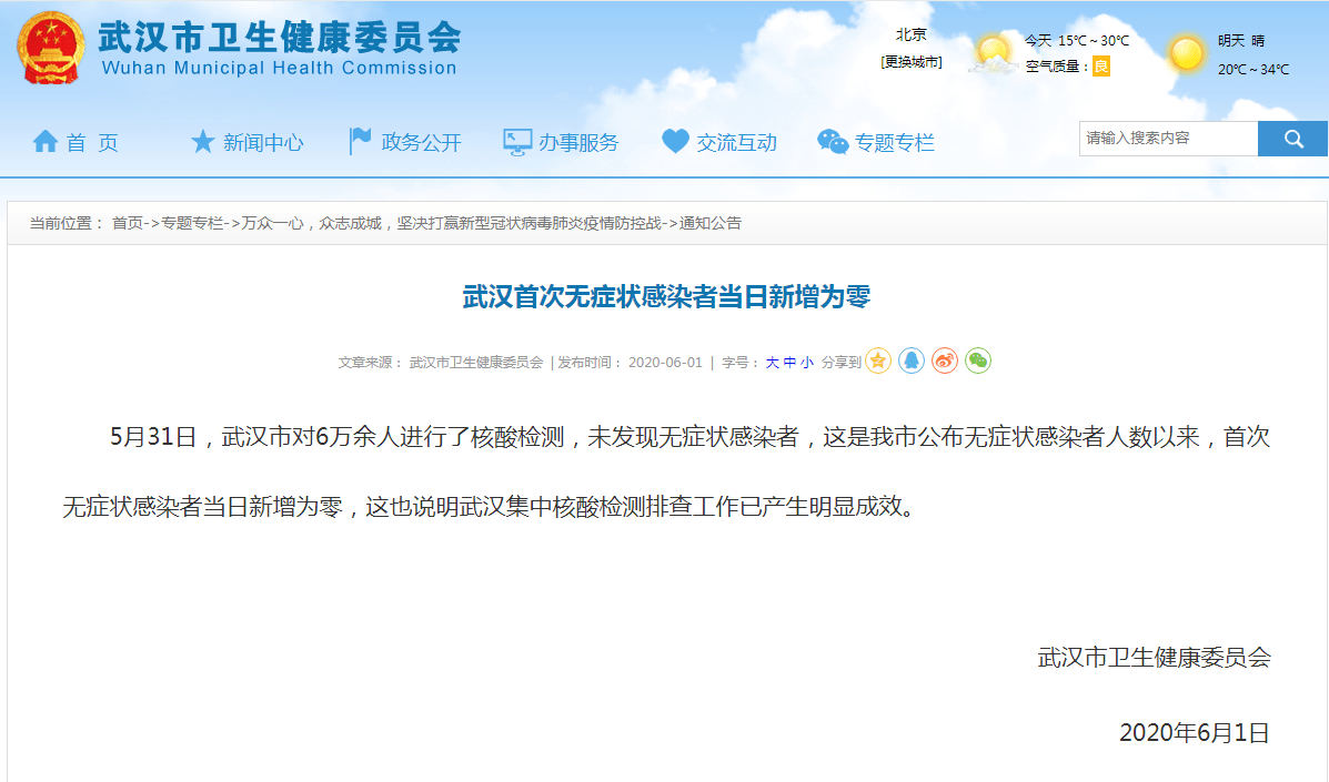 | 武汉首次无症状感染者当日新增为零 |