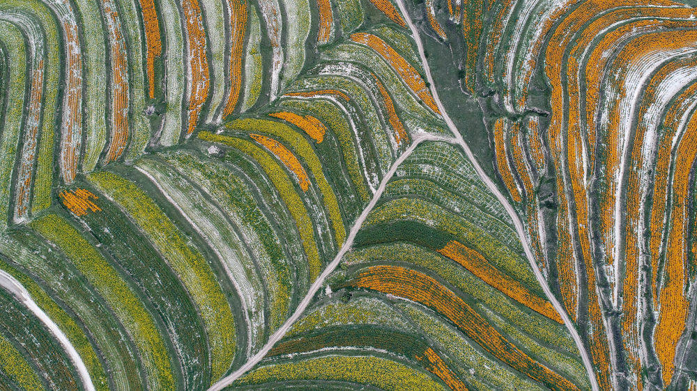 宁夏回族自治区固原市彭阳县旱作梯田(2019年8月13日无人机拍摄)。新华社记者冯开华摄