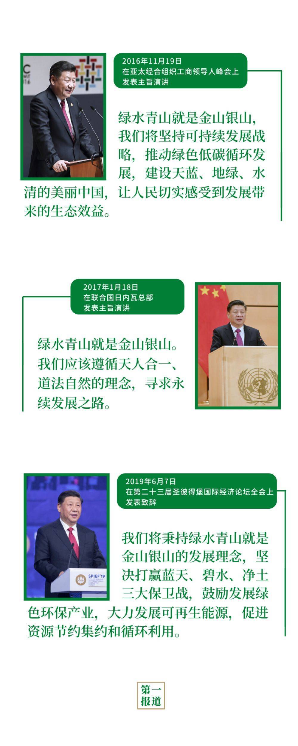 2013年以来,习主席在多个国际场合阐释“两山论”——