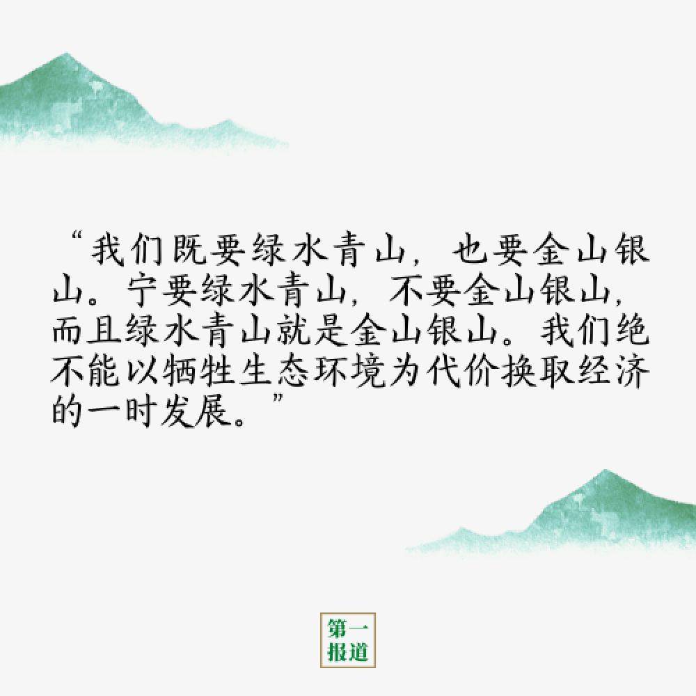“我们既要绿水青山,也要金山银山。宁要绿水青山,不要金山银山,而且绿水青山就是金山银山。我们绝不能以牺牲生态环境为代价换取经济的一时发展。”