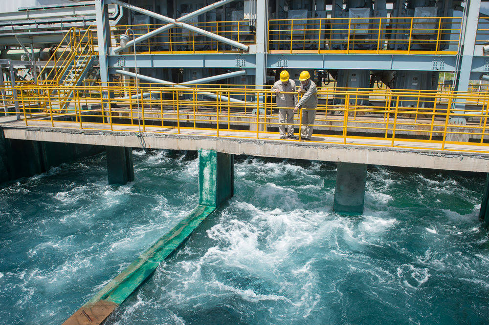 2017年4月26日拍摄的印度尼西亚巴厘岛一期燃煤电站冷却水排放出口照片。新华社记者杜宇摄