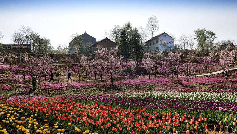 秦岭深处,洛南县锦绣大地花博园内盛开的海棠与郁金香交相辉映。新华社记者陶明摄