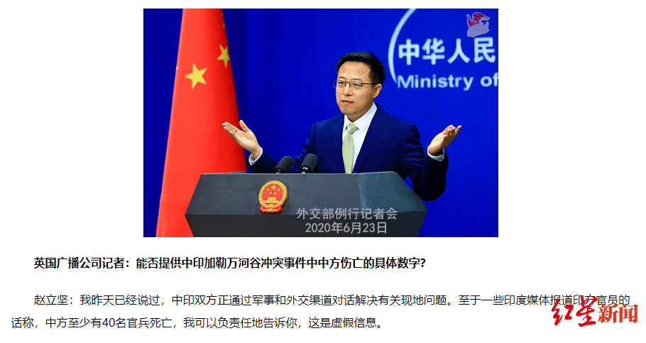 原标题:中印边境冲突中方死亡40人?外交部:这是虚假信息