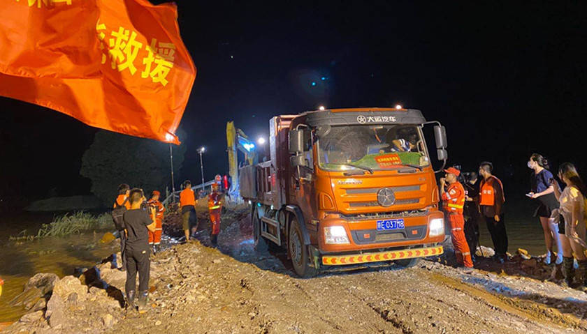 7月8日,中国安能第二工程局(原武警水电部队)从江西南昌、江苏常州、福建厦门调集400余名抢险人员、52台套装备车辆紧急驰援。