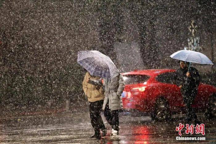 资料图:12月13日夜间,南京迎来2020首场雪,漫天雪花飞舞。图片来源:视觉中国