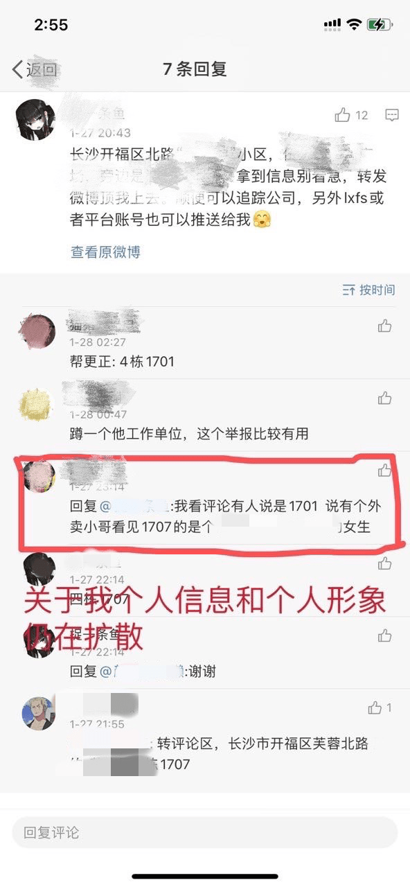 不久后,在该条微博下方就有网友扒出了这对男女的真实姓名与电话号码,附带了一个精确到具体门牌号的家庭住址。记者注意到,有留言称这对情侣被爆出的电话已经无法接通。