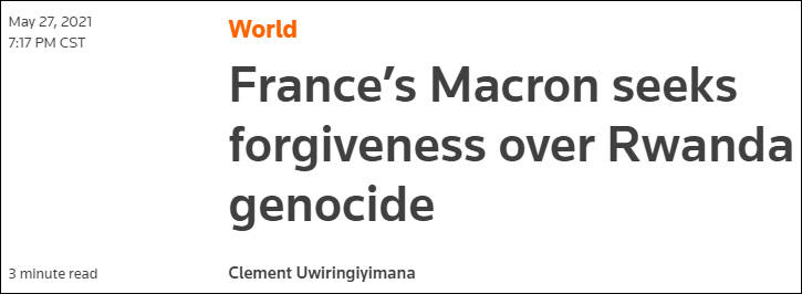 周四,卢旺达总统保罗·卡加梅(Paul Kagame)称赞法国总统承认了法国在1994年大屠杀中的角色和责任,并称“他(马克龙)的话比道歉更有价值。那就是真相。”