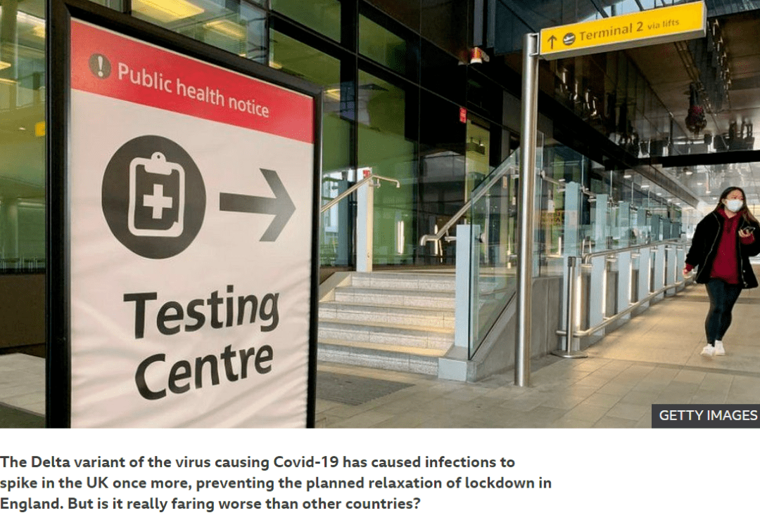 为什么德尔塔毒株在英国扩散快?/BBC报道截图