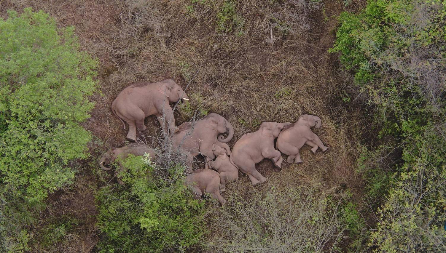 大象集体睡觉的照片,让大家感受到动物的质朴温情,一度走红网络,这张照片出自亚洲象搜寻监测任务分队A组组长张雄。