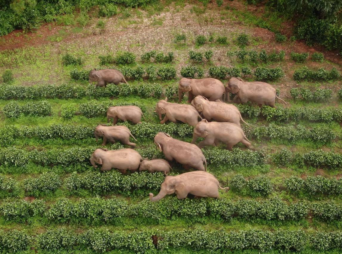 2020年3月,生活在云南西双版纳的亚洲象“短鼻家族”,拖家带口进行大迁移。15只大象离开栖息地,一路北上,历经17个月,迂回行进数千公里后,终于在人类不断投食引导之下慢悠悠南归。