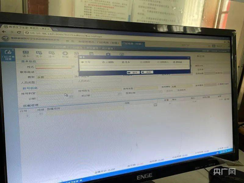单县基层医疗卫生机构管理信息系统页面,只要输入村民姓名和身份证号,村医就可以开处方药物(总台央广记者 管昕 摄)
