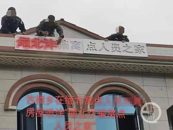 记者获取的图片显示,有多名穿着疑似警服的人员,搭着梯子或者站在屋顶上,利用模具在居民房屋的外墙上喷涂“缅北诈骗窝点人员之家”字样,字体为红色。当地知情者介绍,10月上旬以来,当地政府组织人员在杨林乡、古楼乡对涉及滞留缅北、涉嫌诈骗人员的居民家外墙进行喷涂。10月22日上午,记者致电洞口县公安局,接线工作人员表示确有此事,但他们不负责具体工作。“整个洞口涉及缅北诈骗窝点人员共有200多个,已经劝返100多个,还剩70多个没回来。”古楼乡派出所工作人员介绍,政府部门前期做了很多工作,但“他们就是不回来,死都要死在那里”,并称他们所喷涂的人家事先都经过反复确认,工作任务艰巨,不得已才为之。记者注意到,8月20日,洞口县公安局通过微信公众号“洞口公安”发布《洞口县公安局关于公开警示滞留缅北人员的通告》称,洞口县打击治理电信网络新型违法犯罪工作联席会议办公室于2021年5月31日发布了《关于敦促缅北地区非法出入境人员投案自首的通告》,通告政策感召和多方劝导,绝大多数滞留缅北人员都认识到偷越国(边)境是违法犯罪行为,回到了国内。但仍有少数人员不知悔改、执迷不悟,无视政府部门的政策宣传和大力规劝,顽固不化,拒不回国。《通告》提到,根据公安机关掌握的滞留缅北人员线索,结合全县劝返工作实际,洞口县公安局特对45名仍滞留缅北拒不回国人员予以公开警示,勒令在2021年9月20日前回国,主动到公安机关投案,否则将采取包括刑事强制措施在内等惩戒措施。《通告》最后附有45名滞留缅北人员信息。