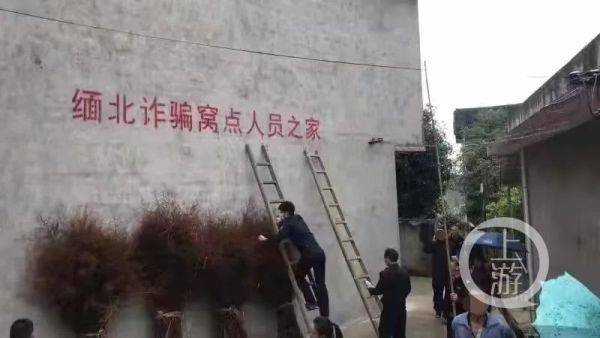 近日,记者接到报料称,湖南省邵阳市洞口县多个乡镇组织基层工作人员在多户居民房屋的墙壁上用油漆写出“缅北诈骗窝点人员之家”字样。
