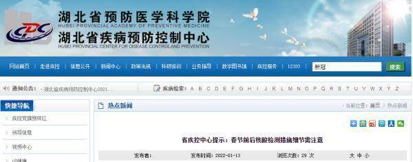 1月12日,湖北省疾病预防控制中心发布《关于2022年春节前后湖北省重点人群新冠病毒核酸检测措施的健康提示》。针对广大群众关注的重点事项和相关细节,现予以具体解答。健康湖北,共建共享,让我们共同携手做好疫情防控,度过一个祥和健康平安的春节!