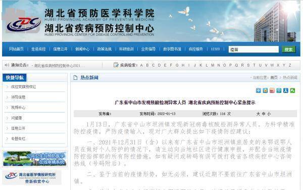 湖北省疾控中心提示: