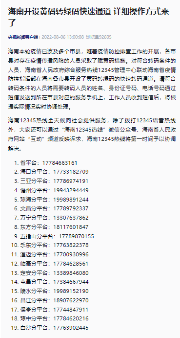 据央视新闻报道,海南本轮疫情已波及多个市县,随着疫情防控排查工作的开展,各市县对存在疫情传播风险的人员采取了赋黄码措施。对符合转码条件的人员,海南省人民政府综合服务热线12345管理中心联动海南省疫情防控指挥部在海南各市县开设了黄码转绿码的快速转码通道。